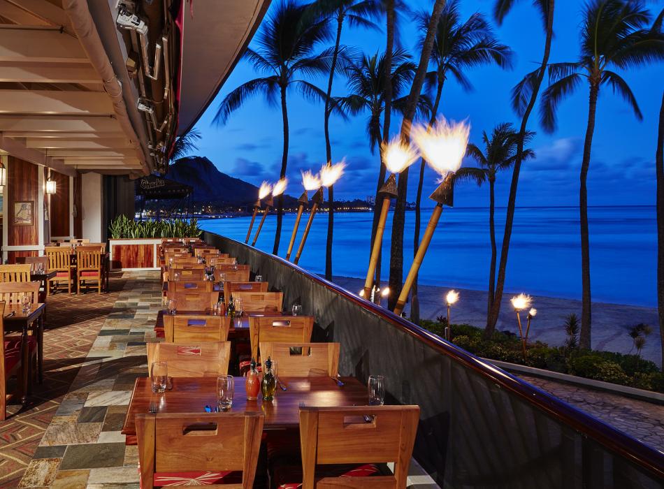 Hula Grill overlooks the beautiful Waikiki Beach and is open for breakfast, lunch and dinner. With its stunning location, it's perfect for any occasion! The restaurant is also home to a full-service bar, so you can enjoy your favorite cocktails while soaking in the incredible views.